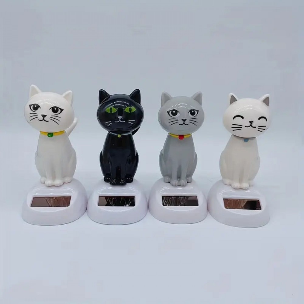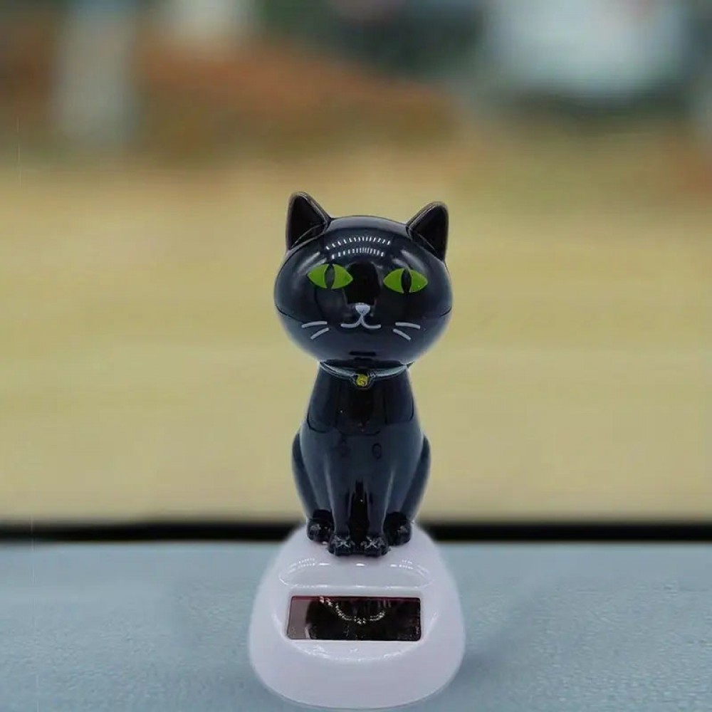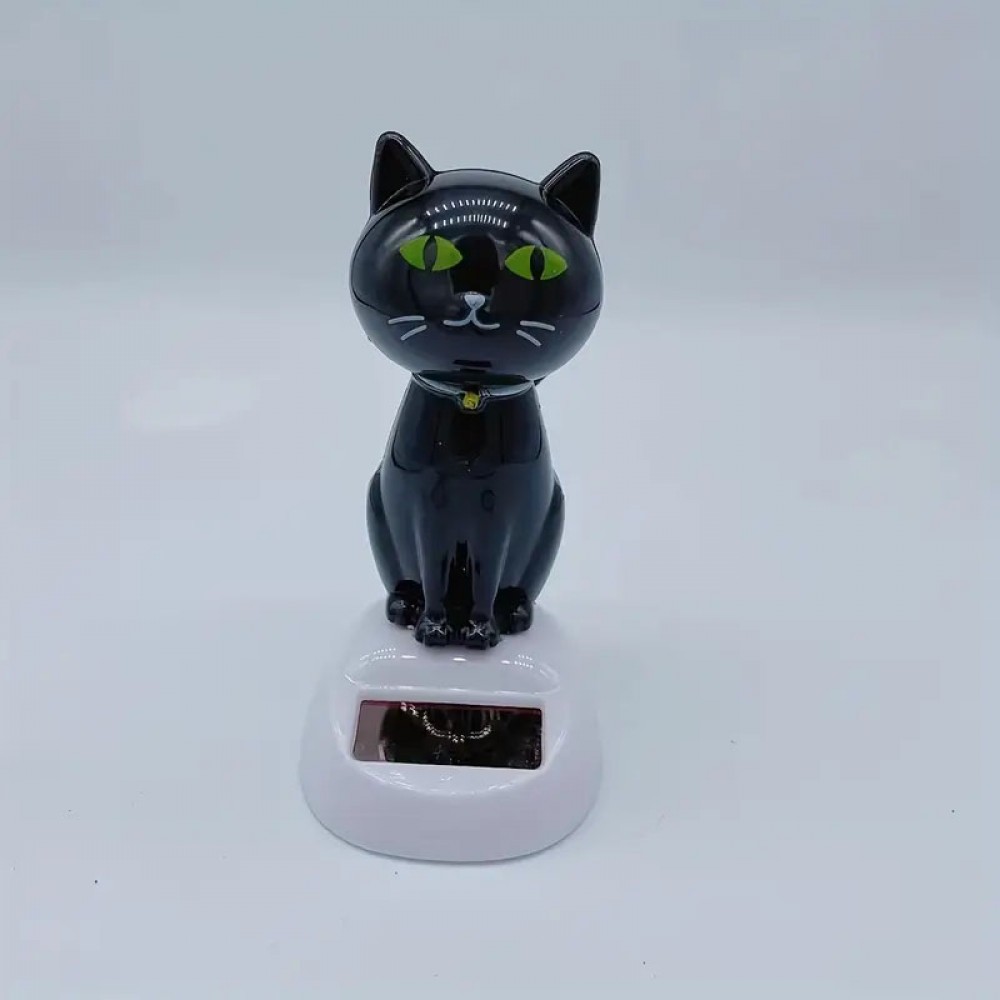 Декор для автомобіля Кішка з рухом головою та хвостом, на сонячних батарейках, Чорний
