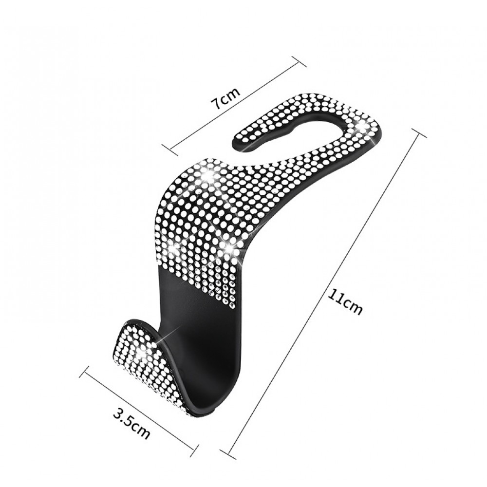 Гачок для сумки на спинку сидіння в стразах Чорний, 2 шт