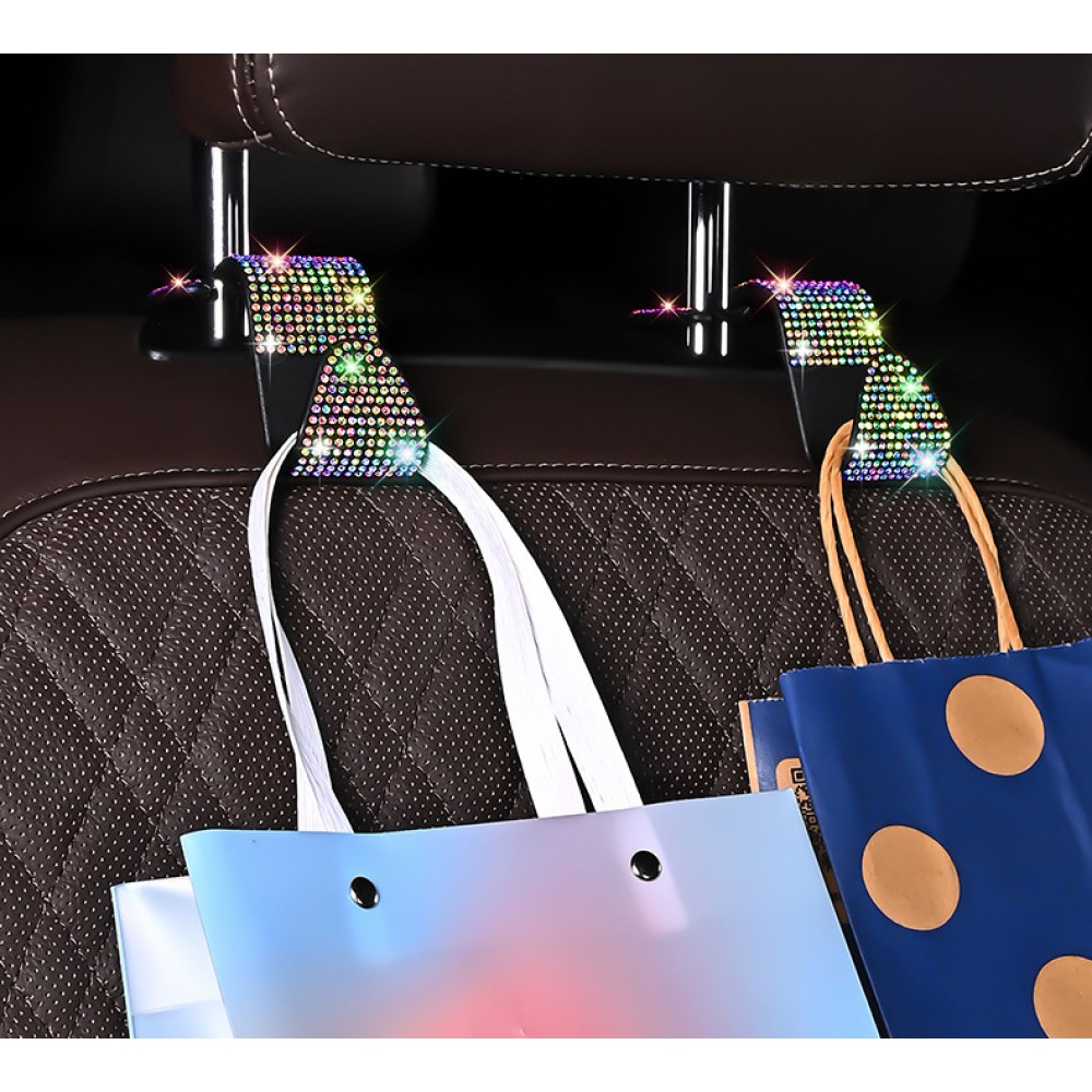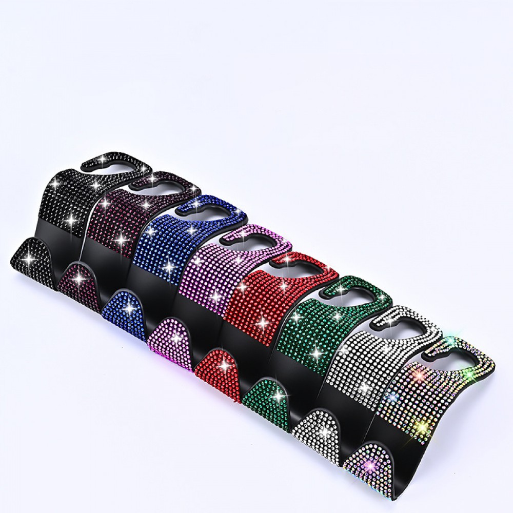 Цей гачок на підголовник сидіння — ідеальне рішення для зберігання сумки, рюкзака чи покупок в авто. А блискуче оздоблення стразами додає шику і створює ефект "вау" у салоні.