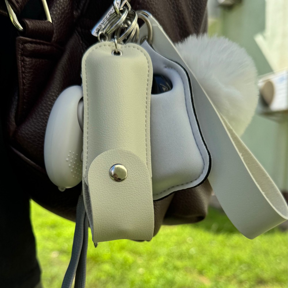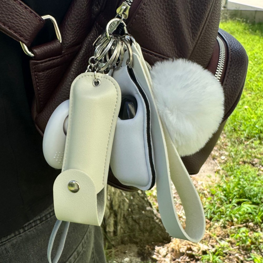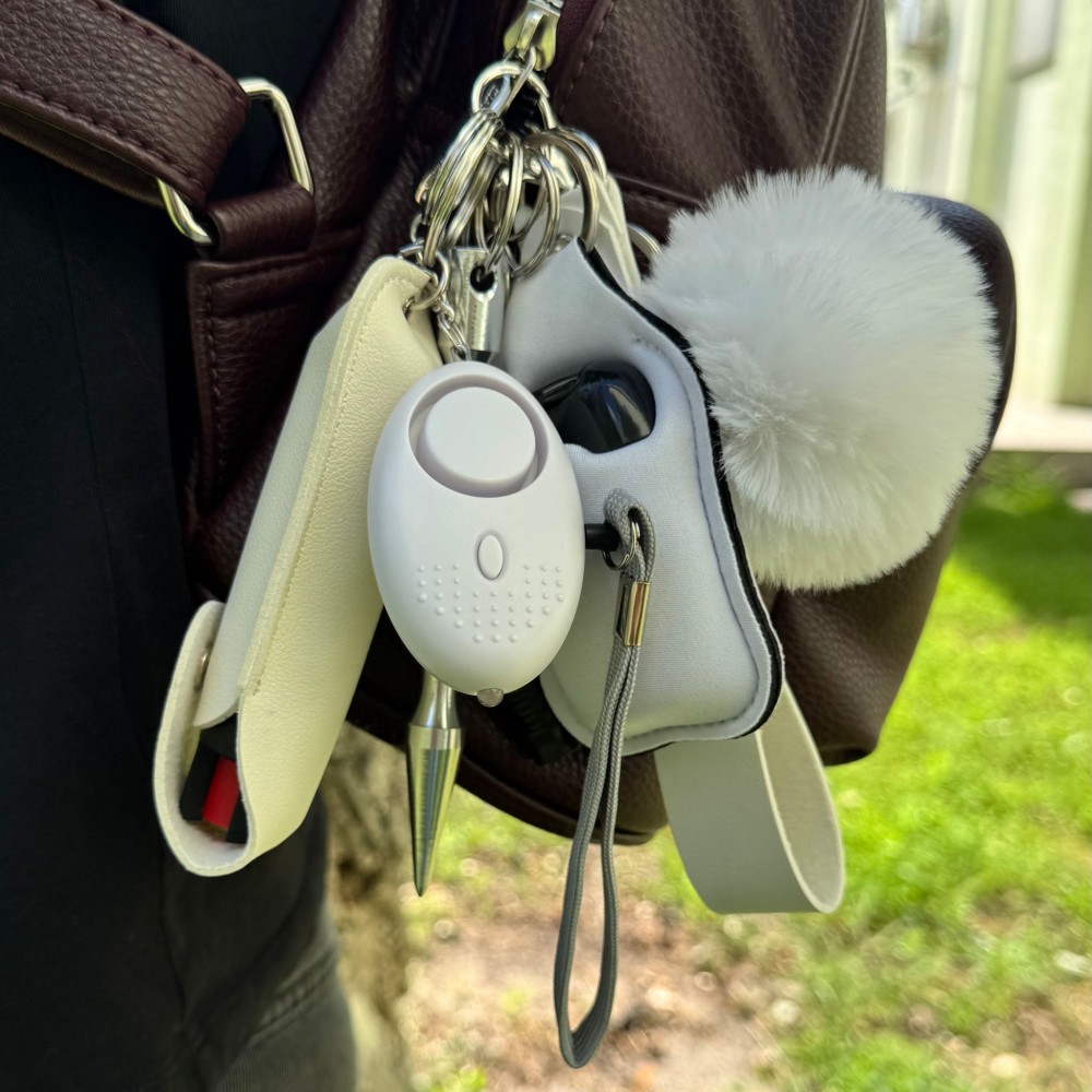 Ключник безпеки Max: сирена, газовий балончик в кейсі, куботан, розбивач-стропоріз, свисток, холдер для антисептика, ремінець, помпон (готовий набір самозахисту), Білий