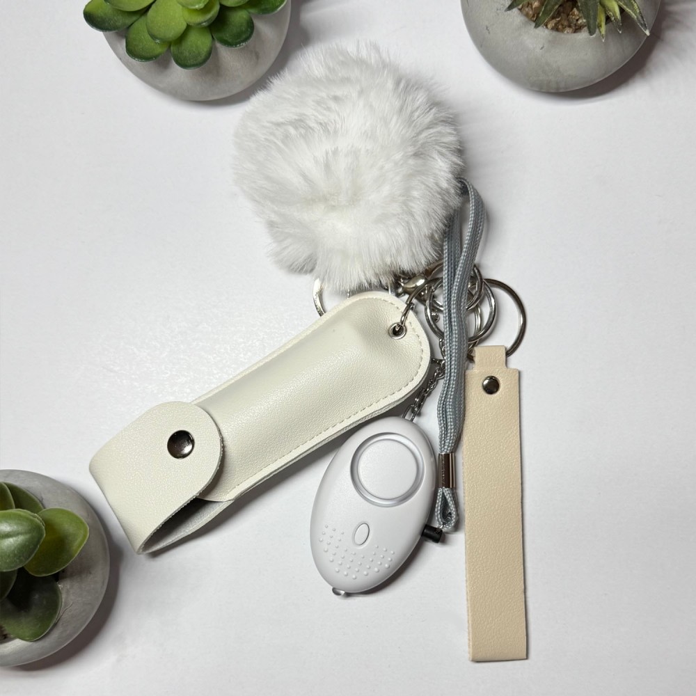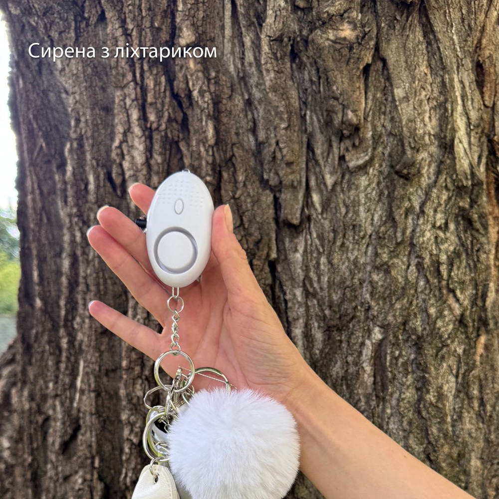 Ключник безпеки Mini: сирена, газовий балончик в кейсі, ремінець, помпон, Білий