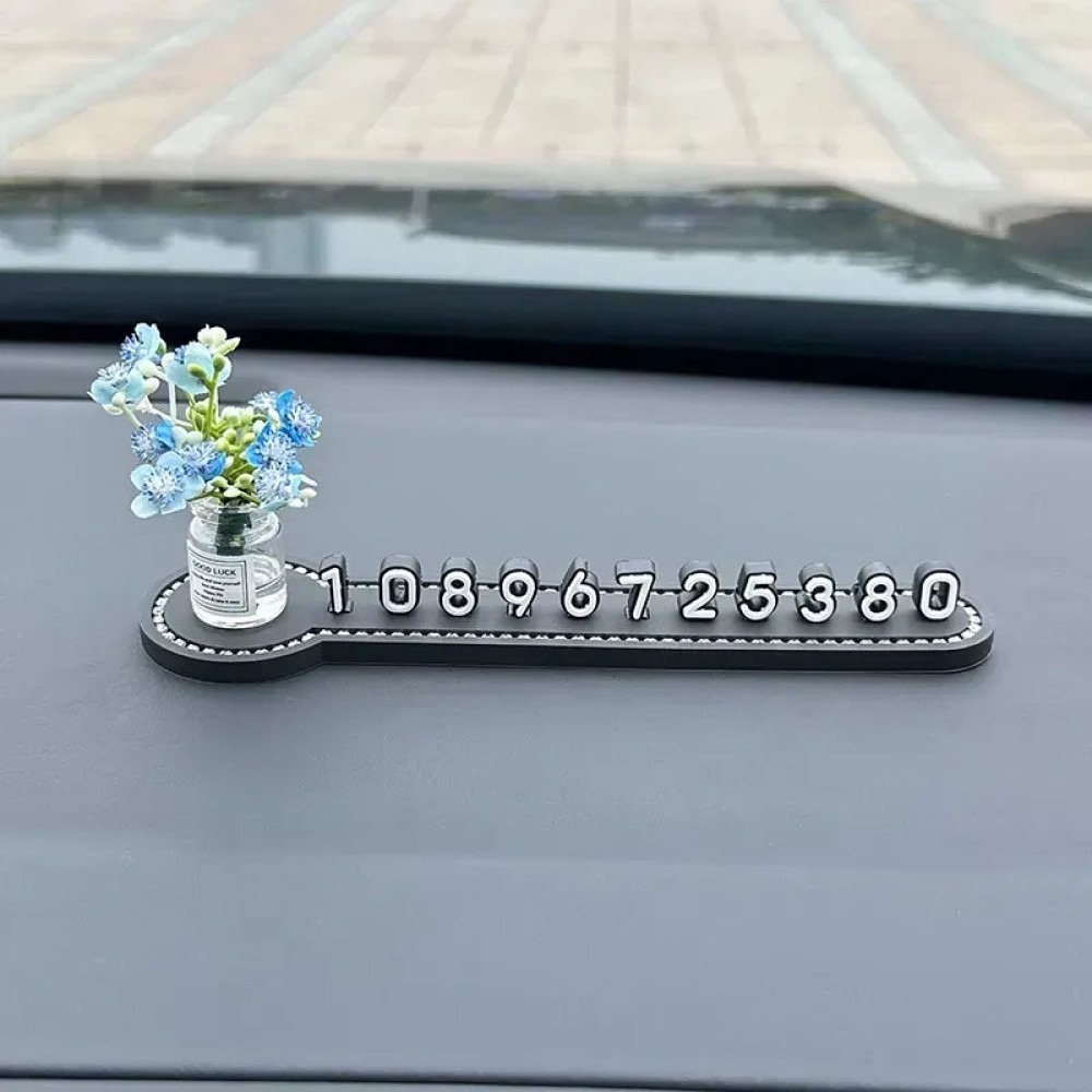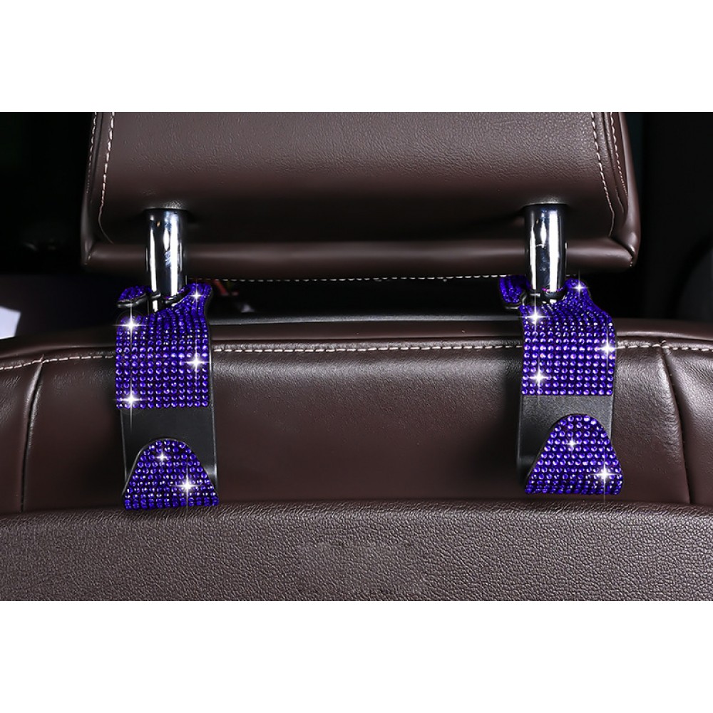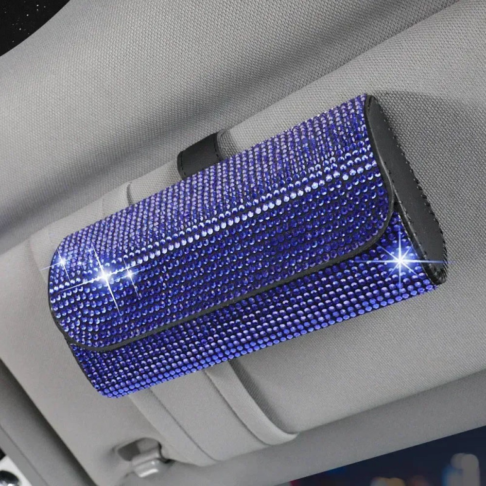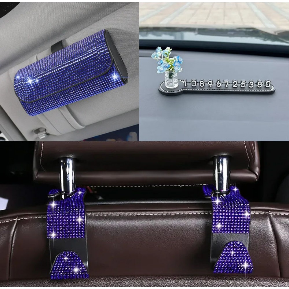 Комплект аксесуарів в авто: чохол для окулярів в стрази, автовізитка паркувальна з квітами, гачок для сумки, Синій