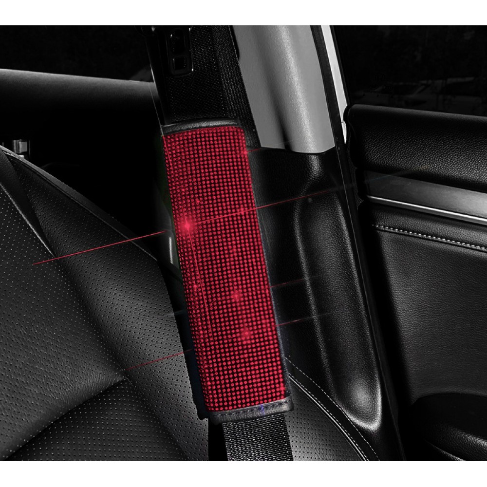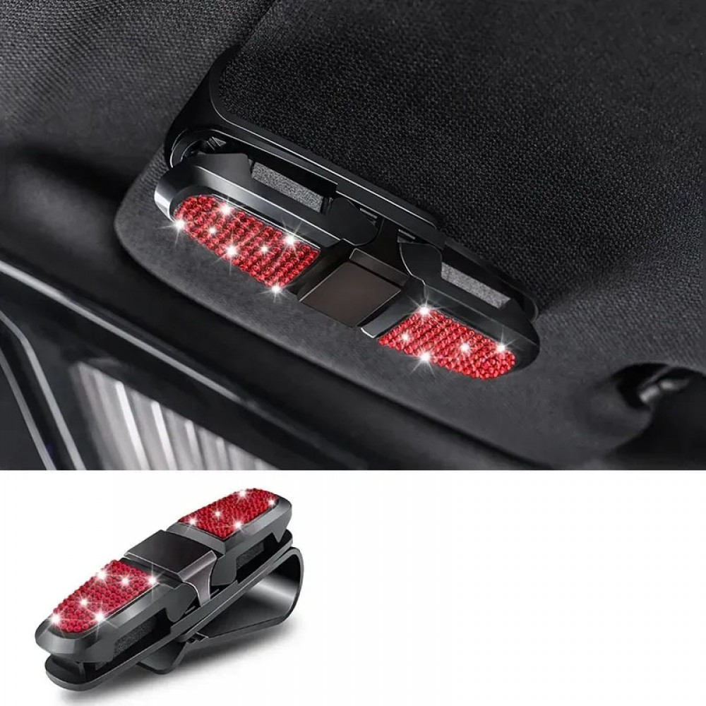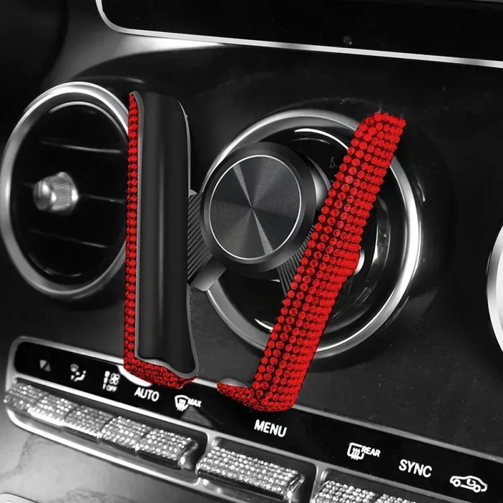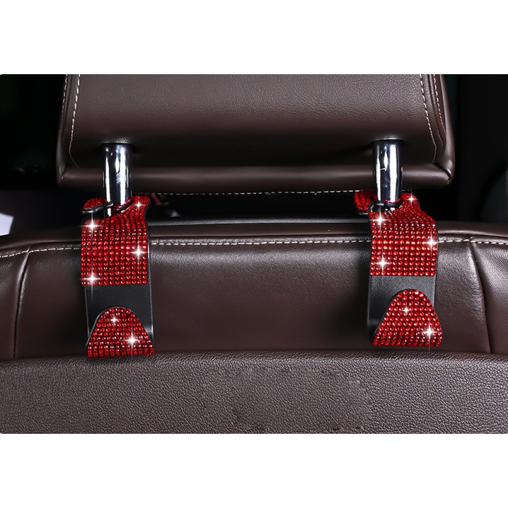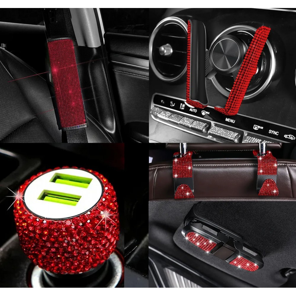 Комплект в стрази: накладка на пасок безпеки, гачки для сумки, тримач окулярів подвійний, зарядка від прикурювача, тримач для телефону, Червоний