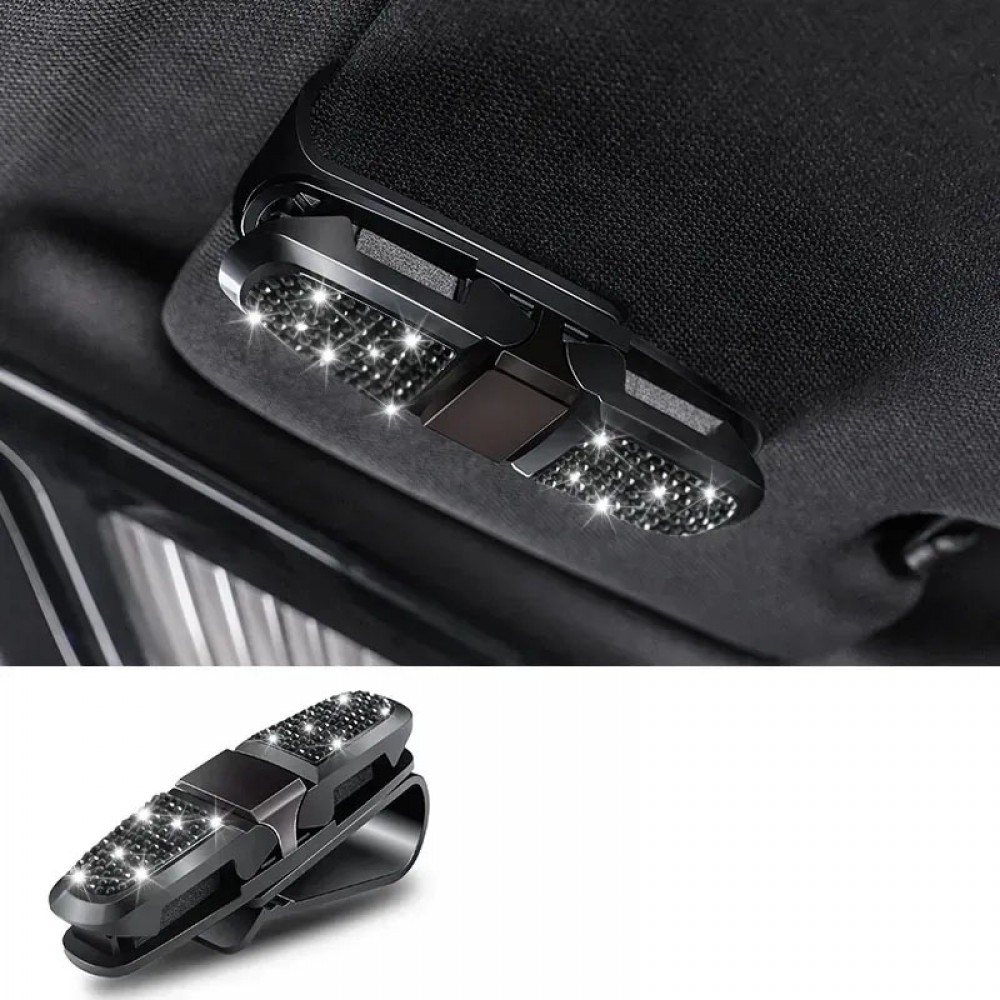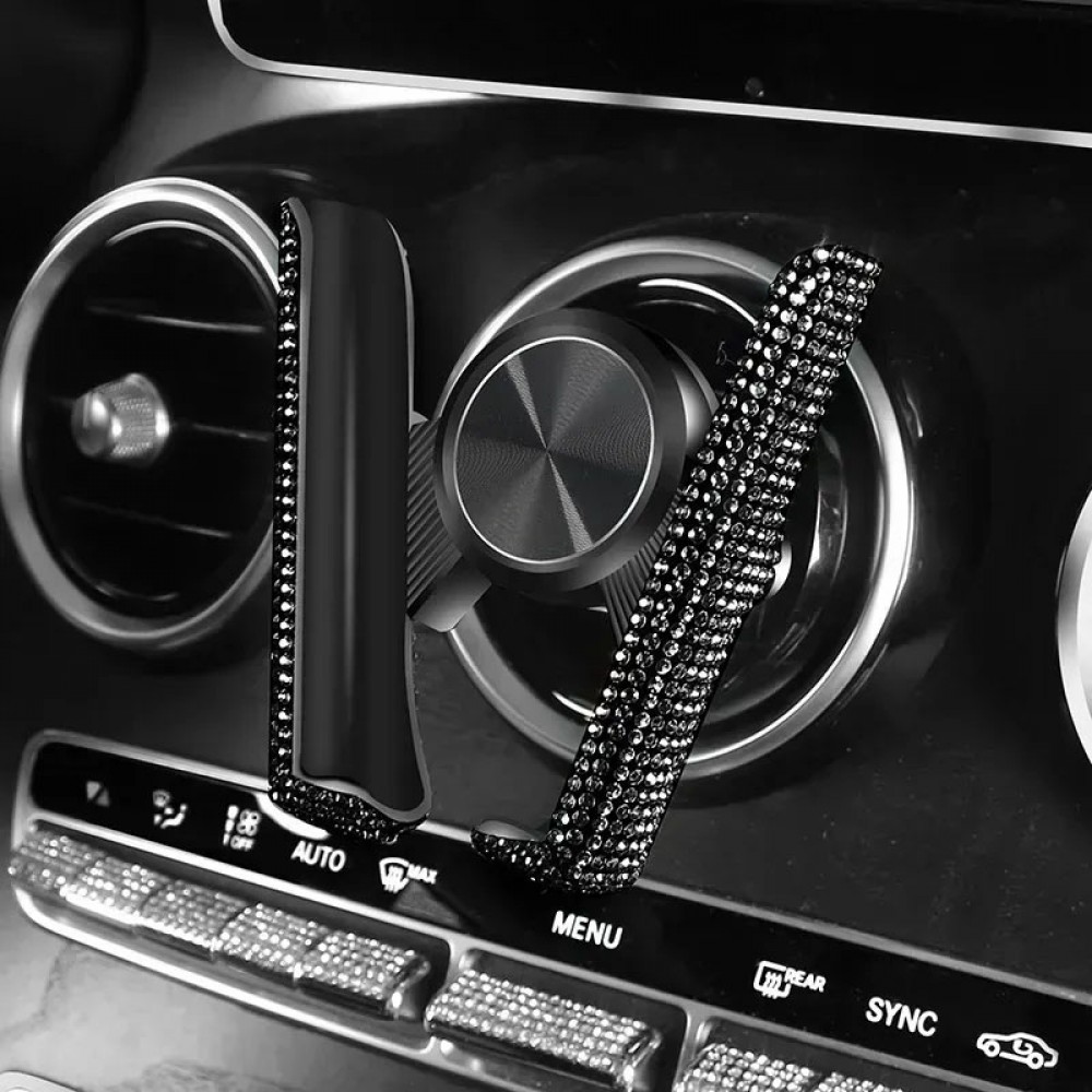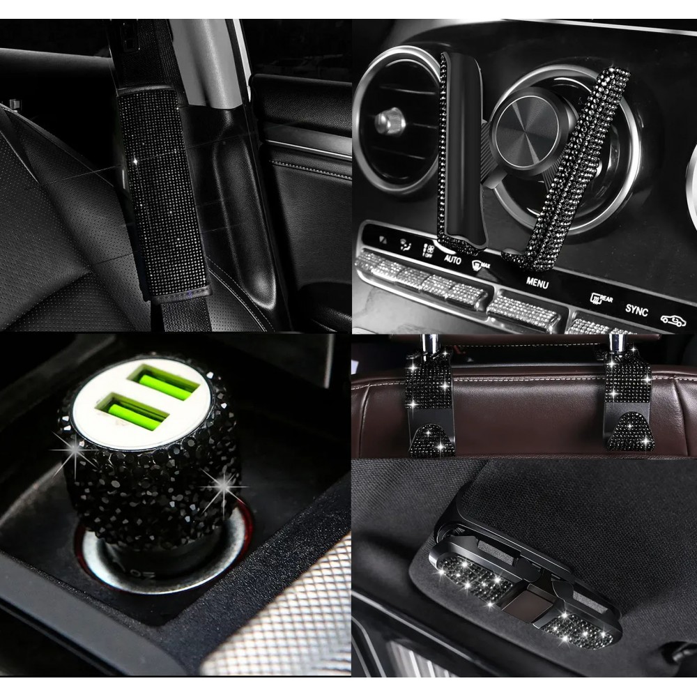 Комплект в стрази: накладка на пасок безпеки, гачки для сумки, тримач окулярів подвійний, зарядка від прикурювача, тримач для телефону, Чорний