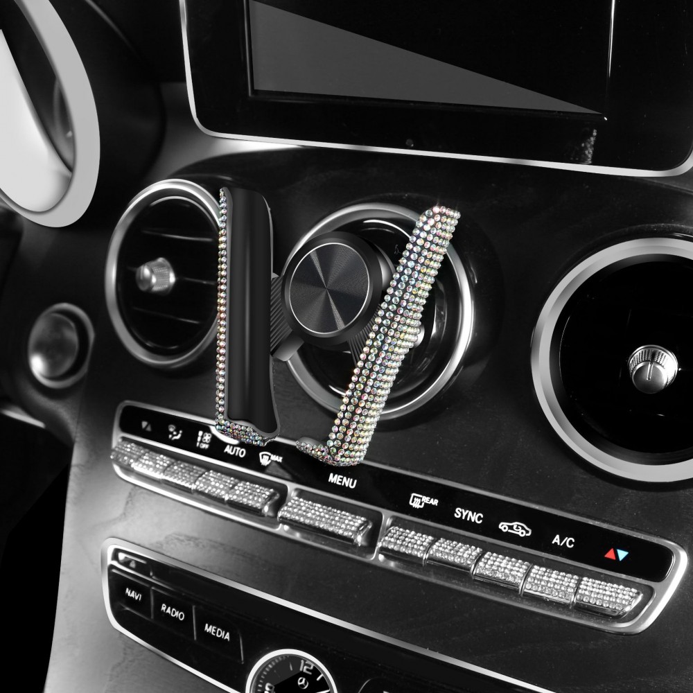 Комплект в стрази: накладка на пасок безпеки, гачки для сумки, тримач окулярів подвійний, зарядка від прикурювача, тримач для телефону, Сріблястий