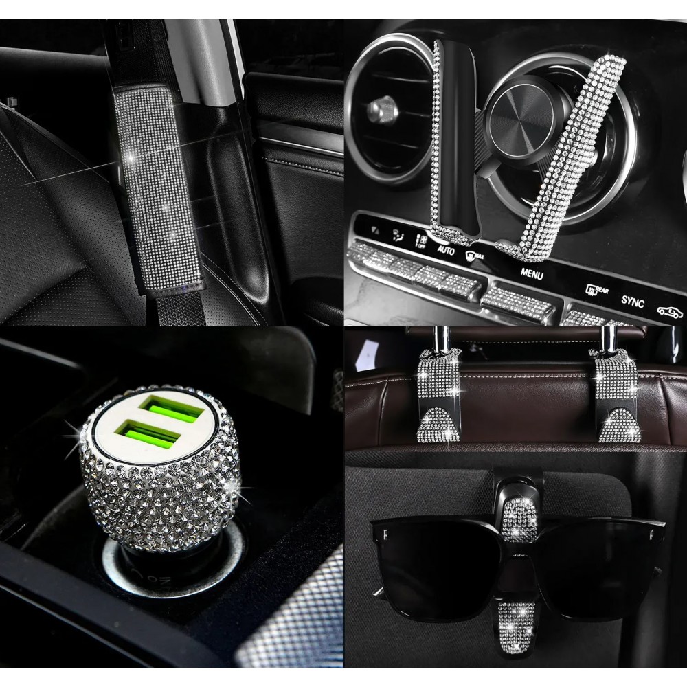 Комплект стильних аксесуарів в салон авто в стрази.