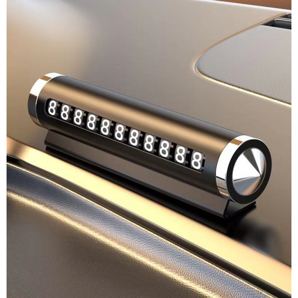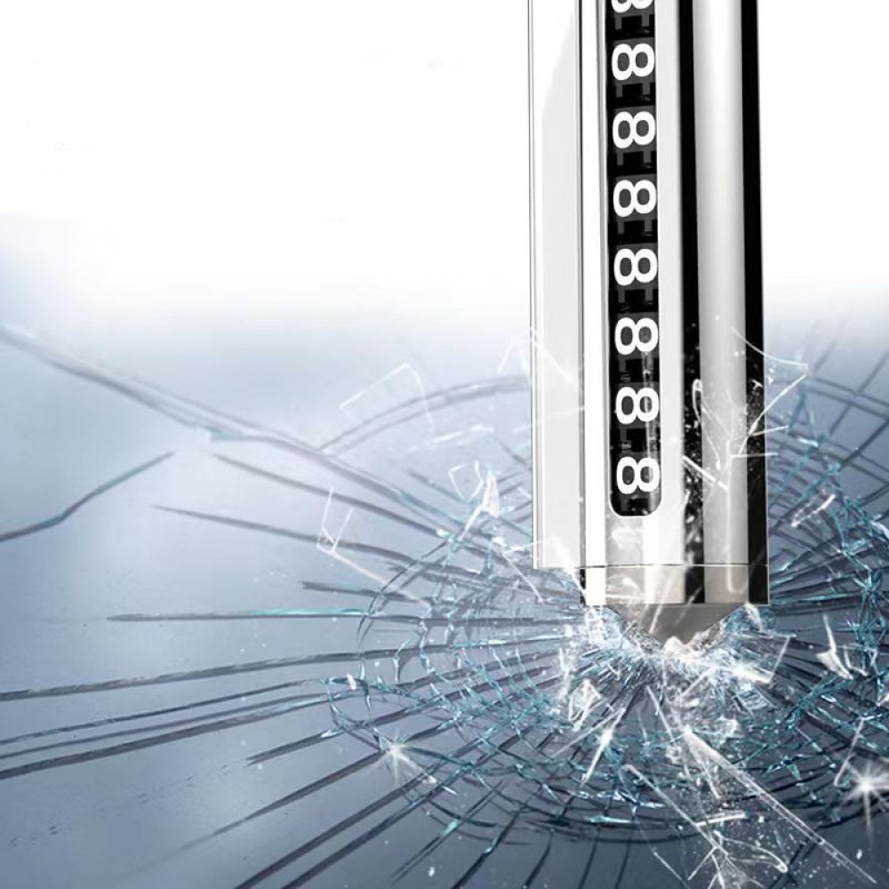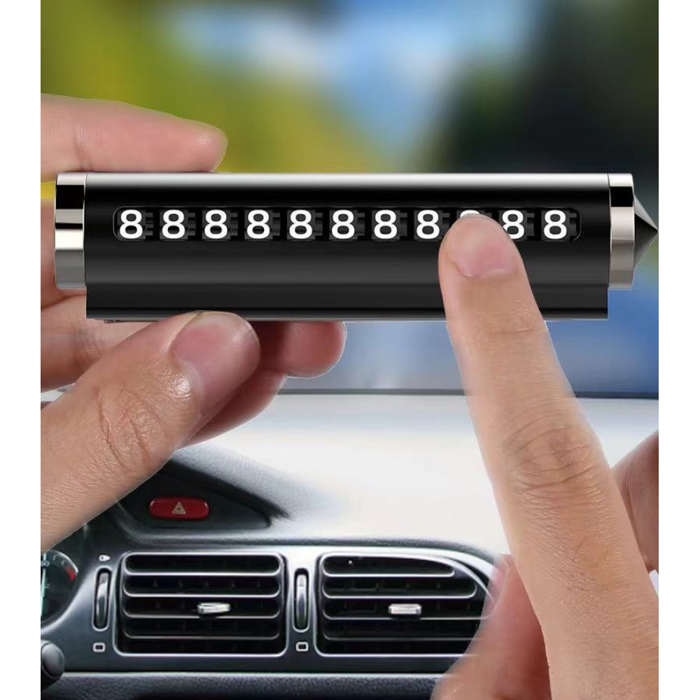 Зручна й елегантна паркувальна автовізитка з функцією аварійного розбивача скла — ідеальне поєднання безпеки та практичності. Циліндричний корпус з металевим блиском чудово виглядає в салоні будь-якого авто. Завдяки змінним цифрам ви легко виставите номер телефону, а компактна форма дозволяє непомітно розмістити пристрій на торпедо. Вбудований металевий наконечник дозволяє використати аксесуар у надзвичайних ситуаціях для швидкого розбиття скла.