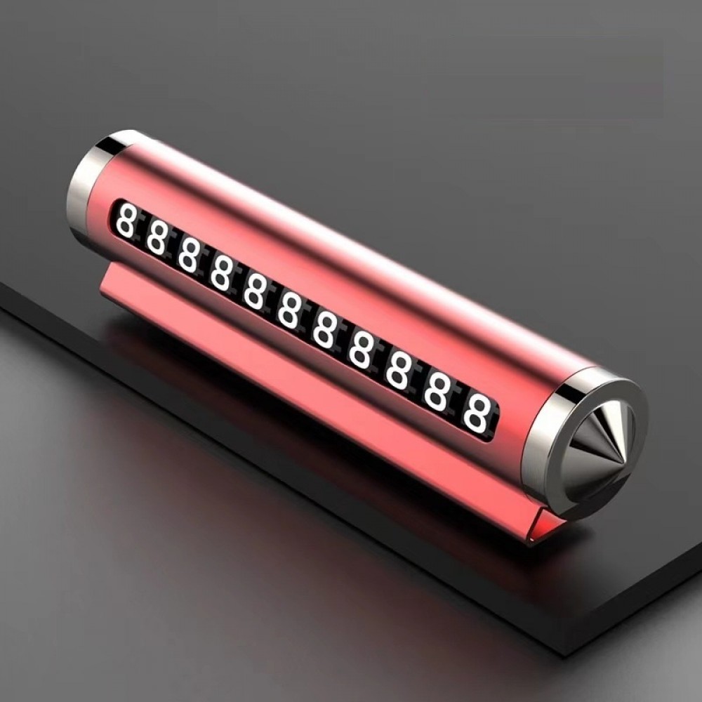 Зручна й елегантна паркувальна автовізитка з функцією аварійного розбивача скла — ідеальне поєднання безпеки та практичності. Циліндричний корпус з металевим блиском чудово виглядає в салоні будь-якого авто. Завдяки змінним цифрам ви легко виставите номер телефону, а компактна форма дозволяє непомітно розмістити пристрій на торпедо. Вбудований металевий наконечник дозволяє використати аксесуар у надзвичайних ситуаціях для швидкого розбиття скла.