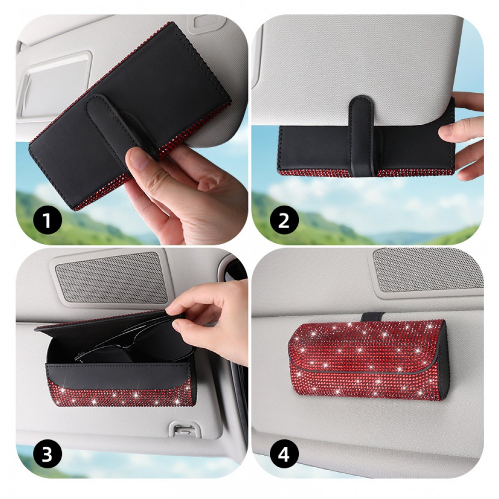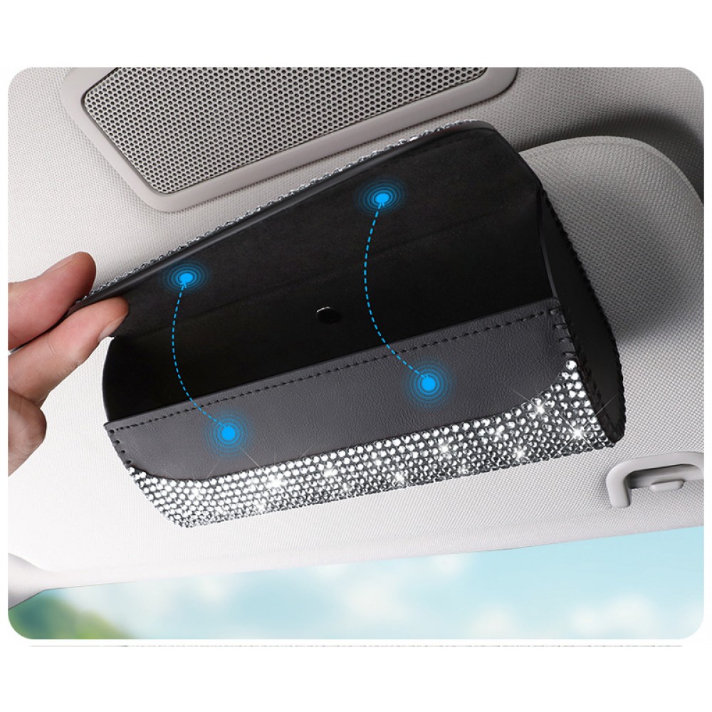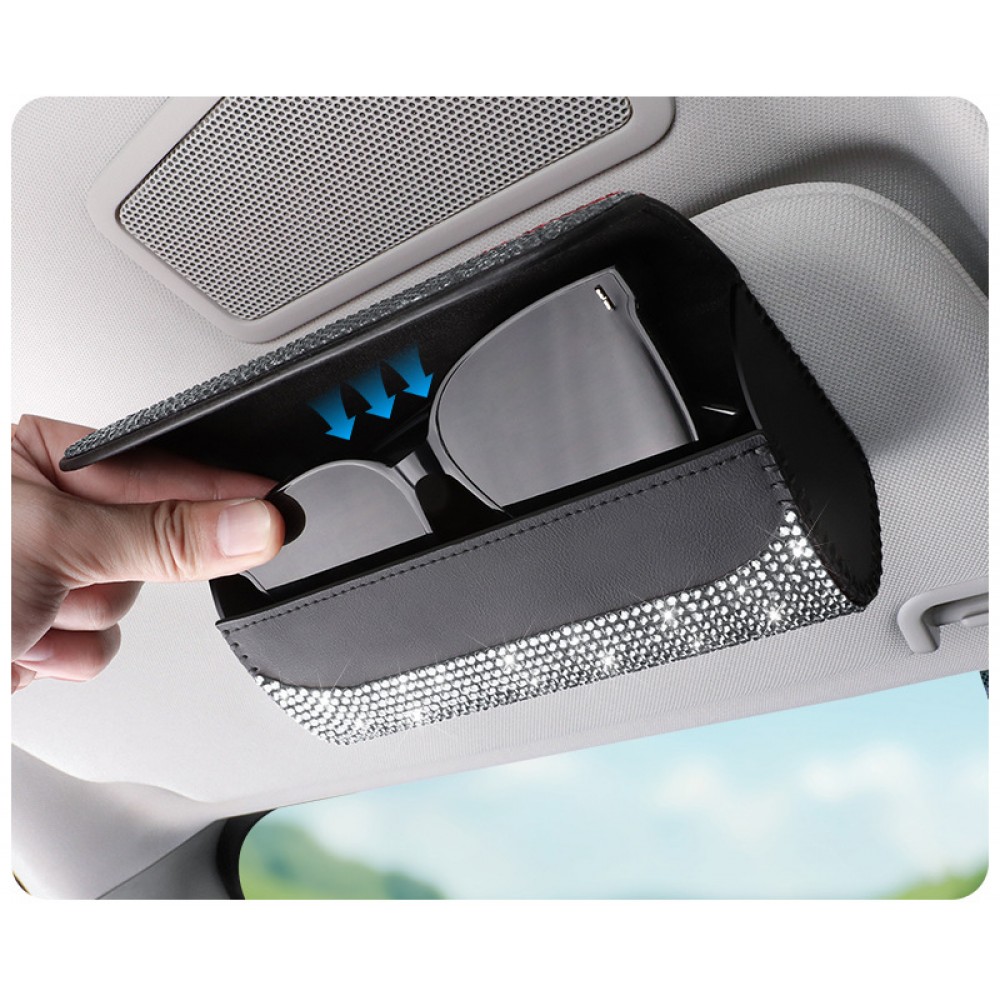 Стильний, функціональний та яскравий аксесуар для кожного автомобіля — тримач-чохол для окулярів зі стразами, що кріпиться до сонцезахисного козирка. Поєднує практичність з елегантністю, додаючи салону розкішного вигляду.